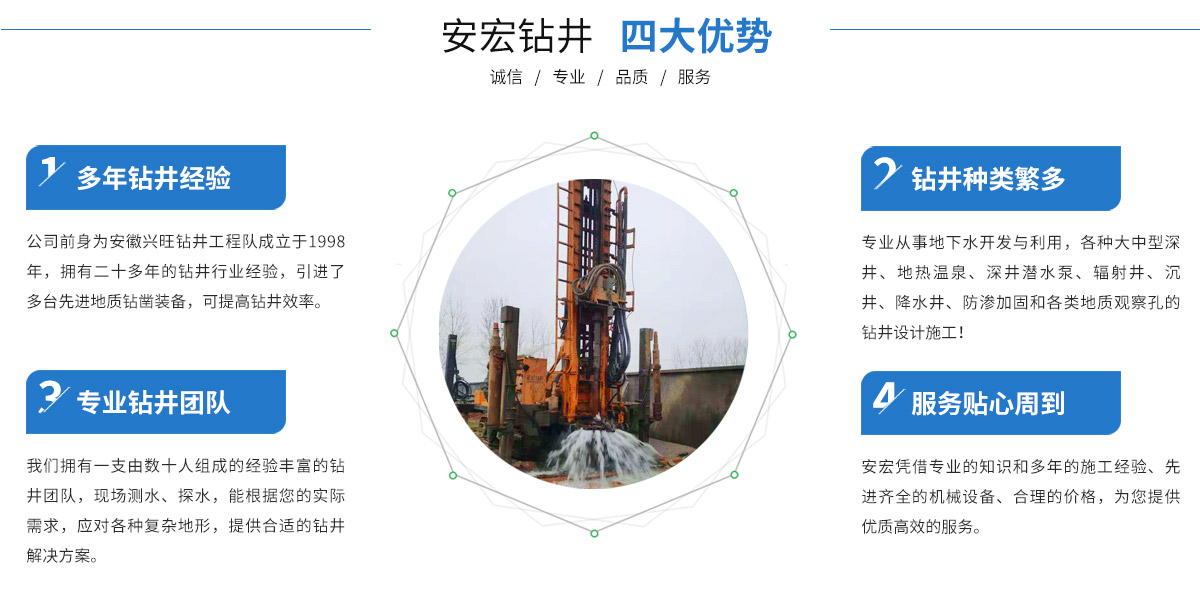 - 寧國(guó)市安宏鉆井工程有限公司,前為安徽興旺鉆井工程隊(duì)成立于1998年,公司從事安徽鉆井(宣城打井、寧國(guó)打井、蕪湖打井、池州打井、宿州打井、桐城打井、銅陵打井、南陵打井、郎溪打井、廣德打井、績(jī)溪打井、馬鞍山打井等),江蘇鉆井(南京打井、高淳打井...